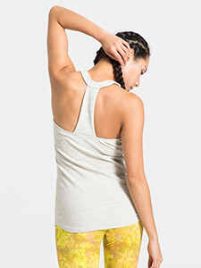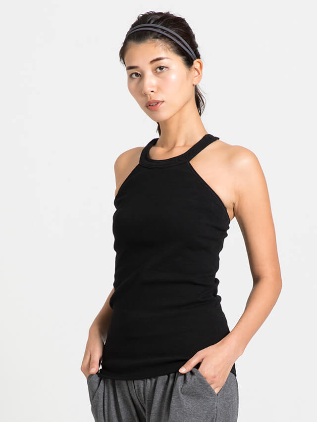 デコルテや背中など女性の美しい部分を存分に引き立てるアメリカンスリーブデザインが特徴のタンクトップ。コットンのカジュアルさとキュプラの上品さがあるフライス素材も特徴的。スポーティーすぎないデザインで、幅広い年代の方に受け入れられやすデザインです。