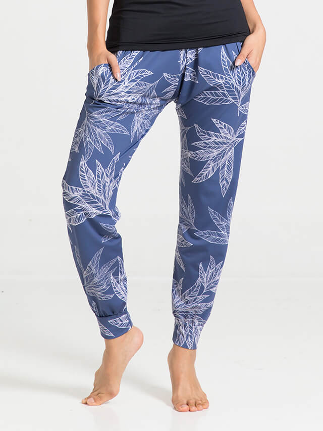 スッキリ美脚に見えるシルエットと大人かわいいリーフ柄のヨガパンツ。速乾素材なのでホットヨガにもオススメ!