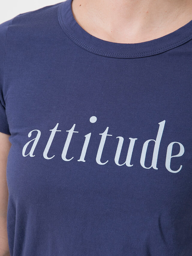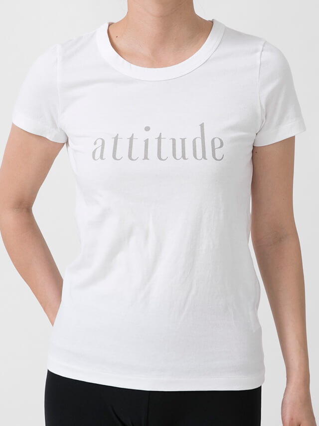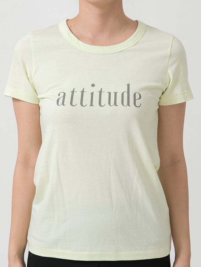 今季のテーマ「attitude」をプリントしたシンプルなTシャツ。