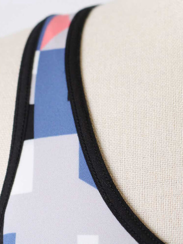 グラズ・レスピレのアイコン的存在でもある「タウン柄」プリントのブラトップ。このプリントはブルックリンの街のいびつなビル・窓の形をイメージしてます。