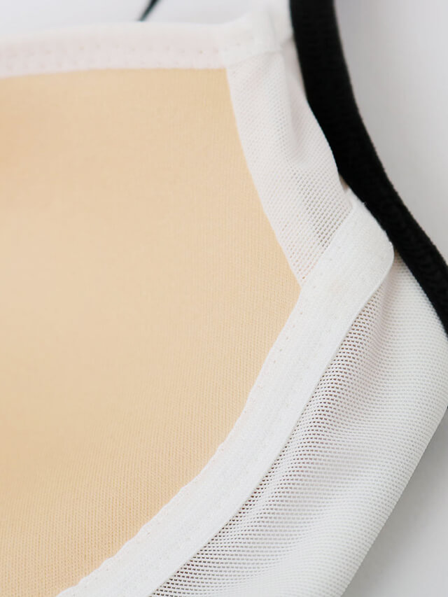 - グラズこだわりの下着製法でつくられたブラカップ。カップを縫い付けず2枚にすることでどんな動きでもバストをサポート。