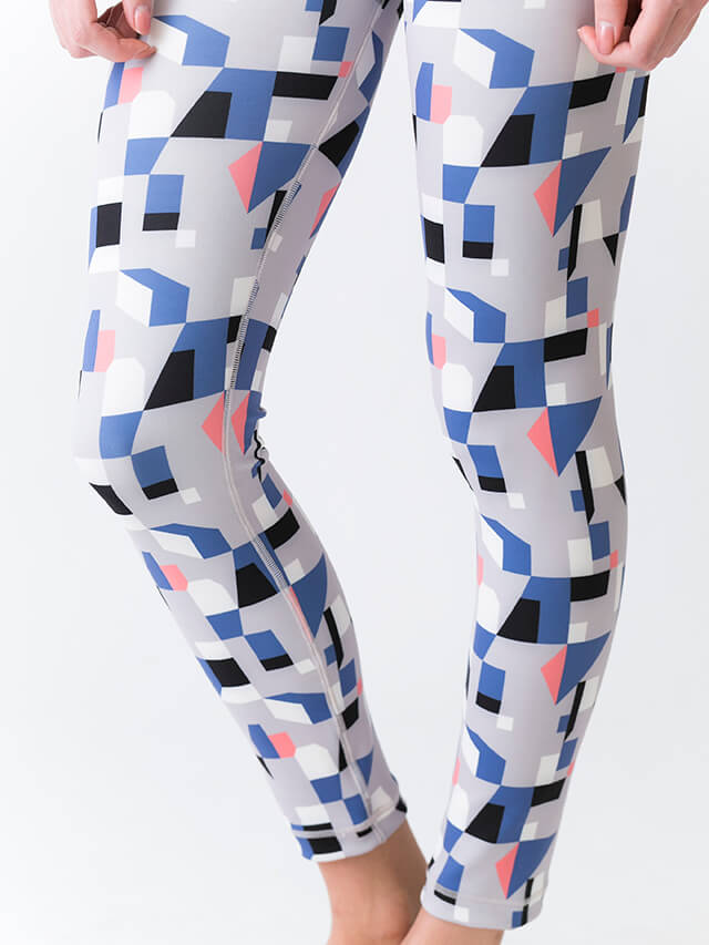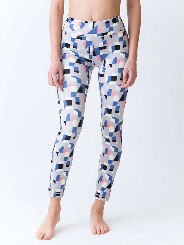 ブルックリンの街のいびつなビル・窓の形をイメージしたタウン柄プリントのレギンスはグラズ・レスピレの一番人気アイテム。色使いもお洒落で都会的!