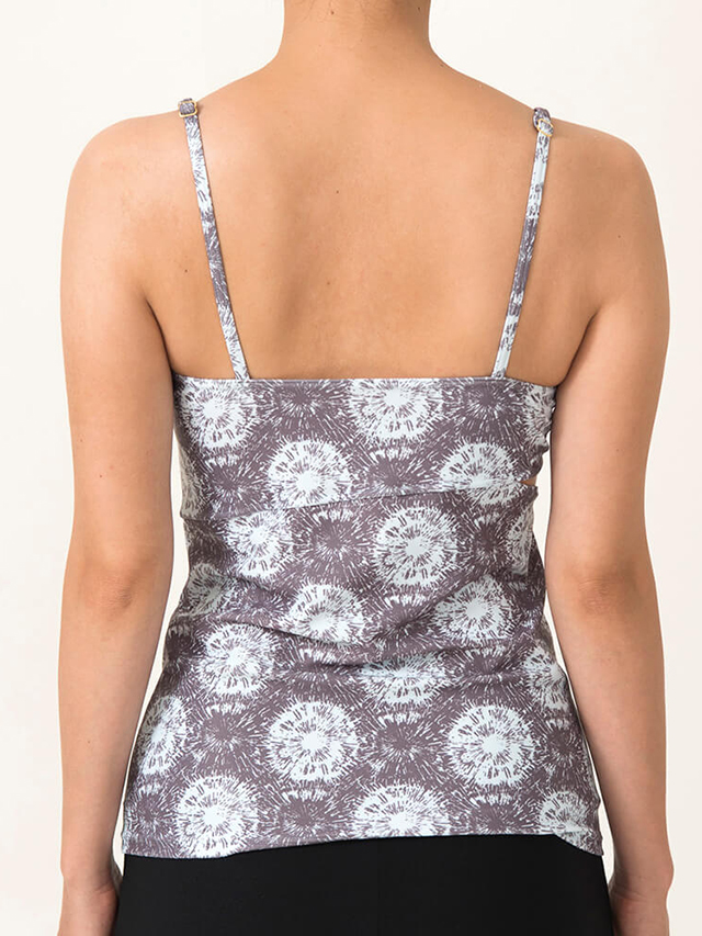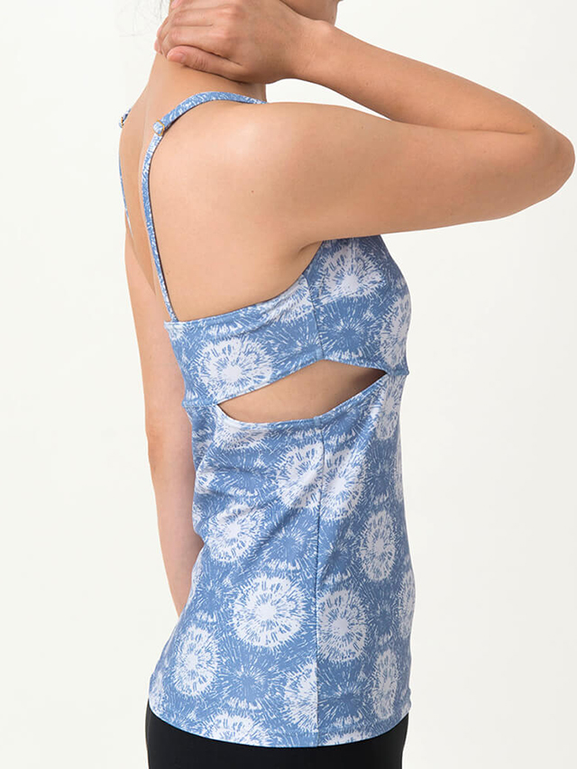 今季のヨギー・サンクチュアリを代表するファイヤーワークス柄のブラ付きキャミソール。いつものボトムスと合わせるだけで花火のようにパッと華やかなヨガウェアスタイルに。